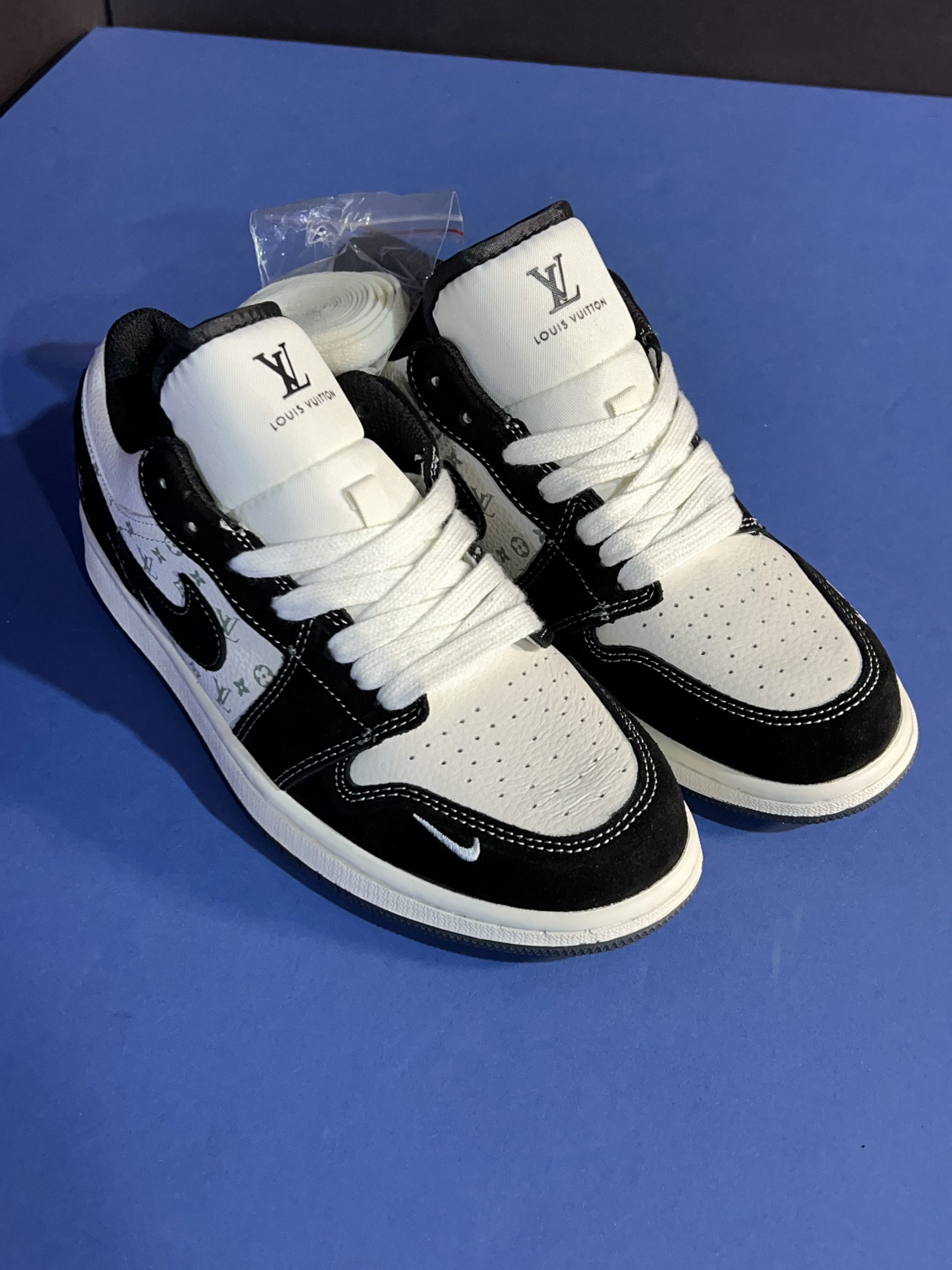 جردن ۱ لو  لویی ویتون مشکی سفید Air Jordan 1 Low  x Louis Vuitton