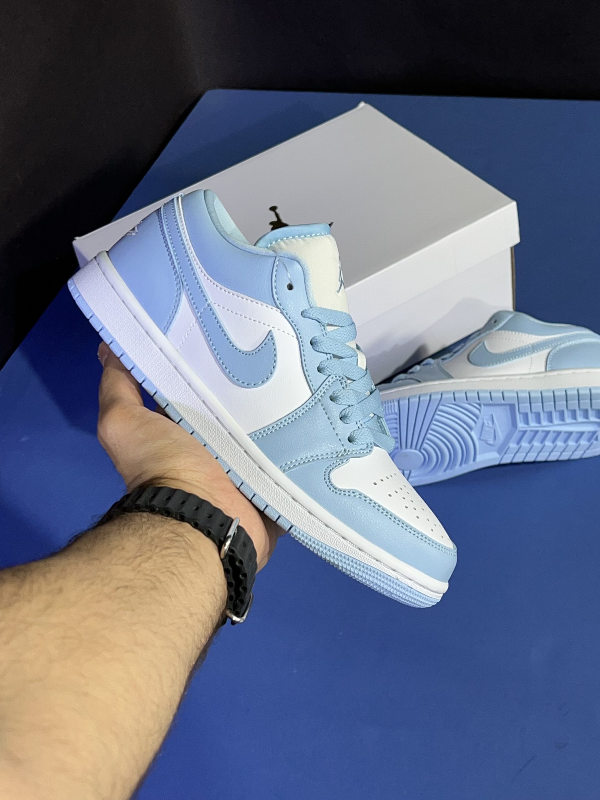 کتونی نایک جردن وان لو Jordan 1 Low White Ice Blue یک کفش ورزشی است که با همکاری کفش پالاس و برند جردن طراحی شده است. Air Jordan 1 low یک کفش کتانی بسیار محبوب در میان علاقه مندان به کفش ورزشی است. طراحی منحصر به فرد این کفش ورزشی آن را به یک محصول با ارزش برای هر مجموعه کفش ورزشی تبدیل کرده است.