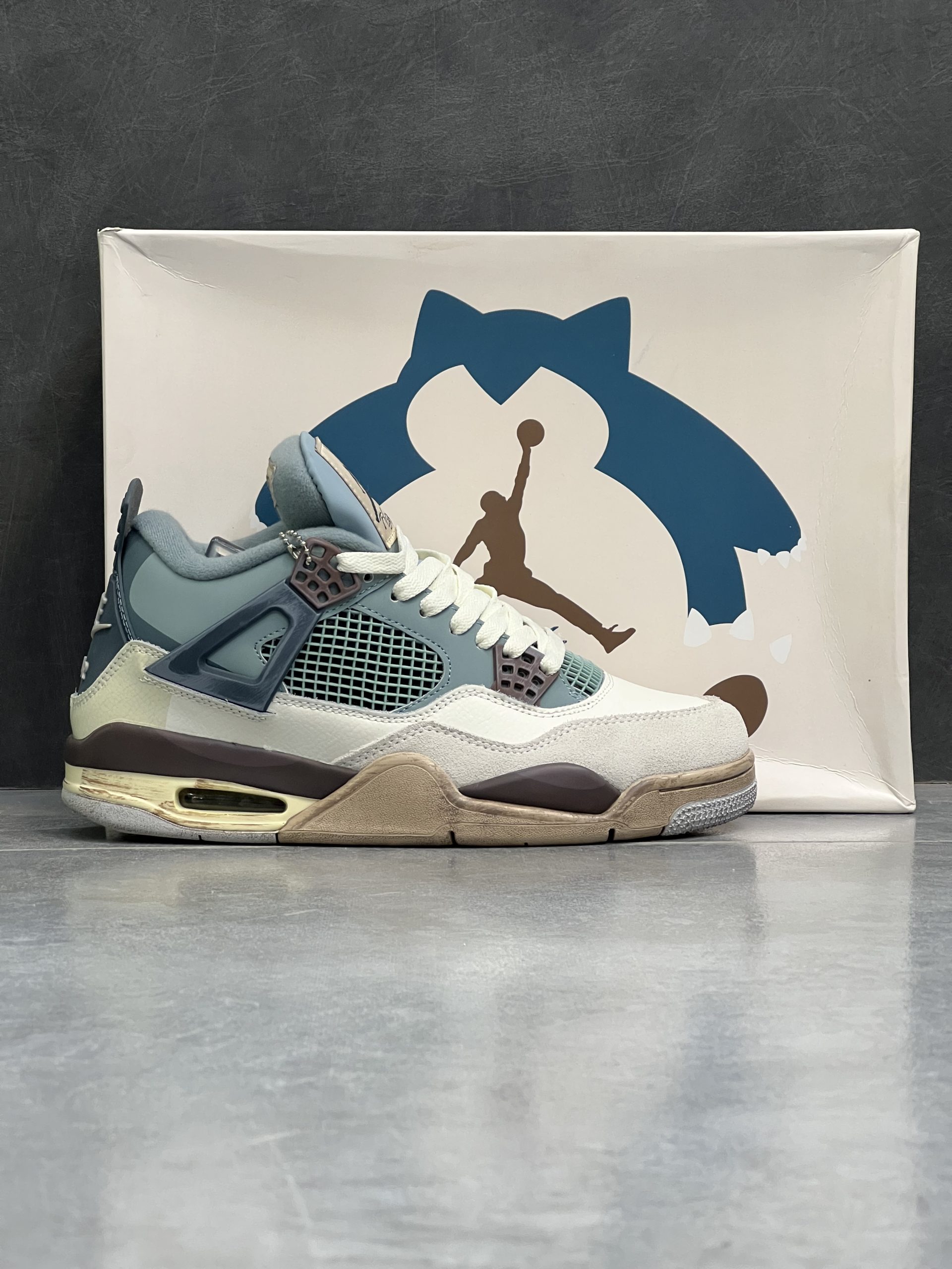 کفش نایک ایر جردن 4 اسنورلاکس یک مدل سفارشی از سری ایر جردن 4 است که از شخصیت اسنورلاکس، از مجموعه پوکمون، الهام گرفته شده است. این کفش ترکیبی از طراحی نمادین ایر جردن 4 و رنگها و المانهای طراحی مرتبط با اسنورلاکس است.